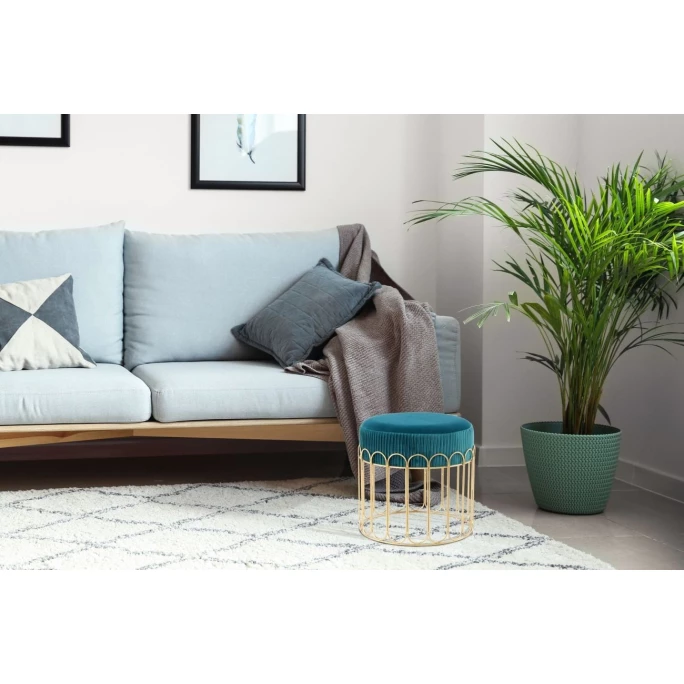 Diese praktische Sitzgelegenheit ist gleichzeitig ein dekorativer Gegenstand für Ihr Zuhause. Grundgerüst des Hockers ist das filigrane Gestell aus Metall, in das die Sitzfläche eingelassen wurde. Die runde Form und das stilvolle Design verleihen dem Hocker einen modernen Charakter. Durch das edle Metall und den dekorativen Aufdruck auf der Oberseite der Sitzfläche erhält der Kayoom HOCKER Cleopatra seinen ganz besonderen und individuellen Look. Auch in Sachen Sitzkomfort lässt das Modell nicht zu wünschen übrig. Die dick gepolsterte Sitzfläche ist mit einem samtweichen Bezug aus Stoff versehen, sodass das Sitzen zu einer angenehmen Angelegenheit wird. Besonders an niedrigen Tischen, wie einem Couchtisch, kann der Hocker ideal genutzt werden. Auch in Räumen mit wenig Platz dient der Hocker als gute Sitzmöglichkeit, denn er kann platzsparend zur Seite gestellt und bei Bedarf hervorgeholt werden. Das elegante Design bringt ein Gefühl von Glamour und Luxus in den Raum und lässt sich nicht nur mit modernen, sondern auch mit klassischen oder orientalischen Einrichtungen gut kombinieren.
