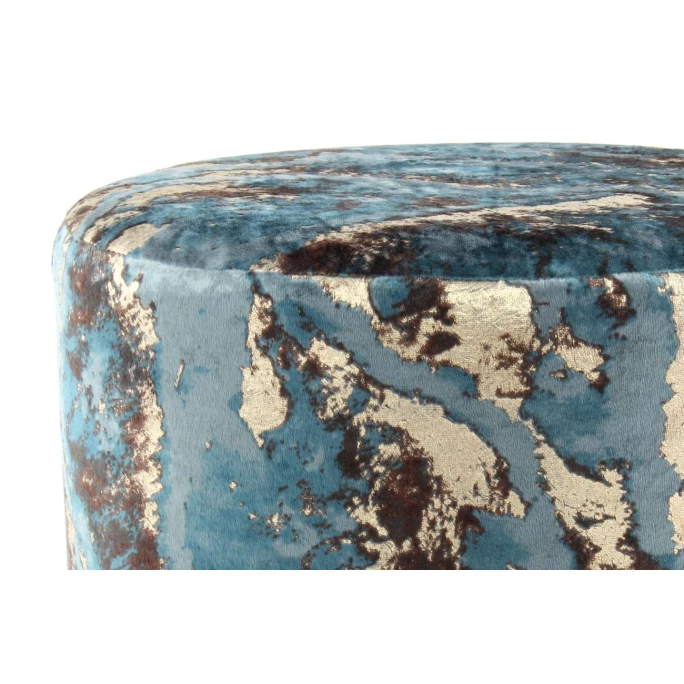 Dieser Hocker vereint eine moderne runde Form mit einer stillvollen marmorierten Farbgebung. Die glamouröse Optik wird durch den samtweichen Stoffbezug mit glanzvollen metallischen Verzierungen intensiviert. In Kombination mit der weich gepolsterten Sitzfläche ist der Hocker eine bequeme Sitzgelegenheit für jeden Raum. Dank der geringen Sitzhöhe eignet er sich ideal zur Integration in die Wohnlandschaft im Wohnzimmer, aber auch als praktischer Sitzhocker, um im Flur die Schuhe an- und ausziehen zu können. Der goldene Standfuß verleiht dem Hocker einen glamourösen Look, der sich positiv auf die Umgebung auswirkt. Egal in welchem Raum Sie den Hocker einsetzen, er wird ein attraktiver Hingucker sein.