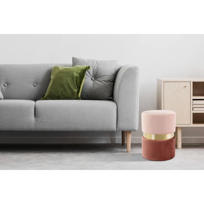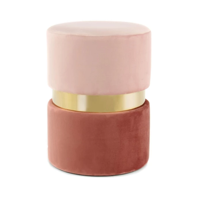 Dieser Hocker vereint eine moderne runde Form mit einer zeitgemäßen zweifarbigen Farbgebung, die durch einen eleganten Metallring optisch voneinander getrennt werden. Die glamouröse Optik wird durch den samtweichen Stoffbezug intensiviert. In Kombination mit der weich gepolsterten Sitzfläche ist der Hocker eine bequeme Sitzgelegenheit für jeden Raum. Dank der geringen Sitzhöhe eignet er sich ideal zur Integration in die Wohnlandschaft im Wohnzimmer, aber auch als praktischer Sitzhocker, um im Flur die Schuhe an- und ausziehen zu können. Egal in welchem Raum Sie den Hocker einsetzen, er wird ein attraktiver Hingucker sein.