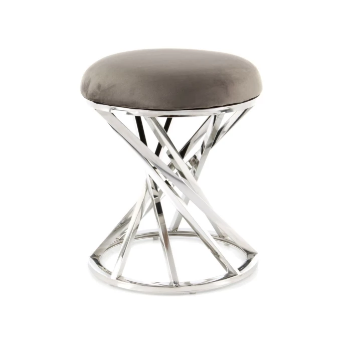 Die offene Gestaltung dieses Sitzhockers bringt ein modernes und einladendes Ambiente mit sich. Das Metallgestell ist in sich gedreht und verleiht dem Hocker seinen besonderen Look. Kombiniert mit der gepolsterten Sitzfläche mit weichem Stoffbezug ergibt sich ein attraktives Gesamtbild mit edlem Charakter. Besonders in luxuriösen Einrichtungen macht der Hocker eine gute Figur. Aber auch in klassischen und modernen Einrichtungen sorgt er für das gewisse Etwas. Durch die runde Grundform und die ebenfalls runde Sitzfläche wirkt der Hocker sehr harmonisch. Dank des leichten Gewichts lässt sich der Hocker als praktische Sitzgelegenheit für Ihren Besuch flexibel einsetzen und bei Bedarf einfach an die Seite stellen.