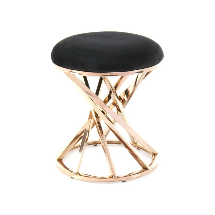 Die offene Gestaltung dieses Sitzhockers bringt ein modernes und einladendes Ambiente mit sich. Das Metallgestell ist in sich gedreht und verleiht dem Hocker seinen besonderen Look. Kombiniert mit der gepolsterten Sitzfläche mit weichem Stoffbezug ergibt sich ein attraktives Gesamtbild mit edlem Charakter. Besonders in luxuriösen Einrichtungen macht der Hocker eine gute Figur. Aber auch in klassischen und modernen Einrichtungen sorgt er für das gewisse Etwas. Durch die runde Grundform und die ebenfalls runde Sitzfläche wirkt der Hocker sehr harmonisch. Dank des leichten Gewichts lässt sich der Hocker als praktische Sitzgelegenheit für Ihren Besuch flexibel einsetzen und bei Bedarf einfach an die Seite stellen.
