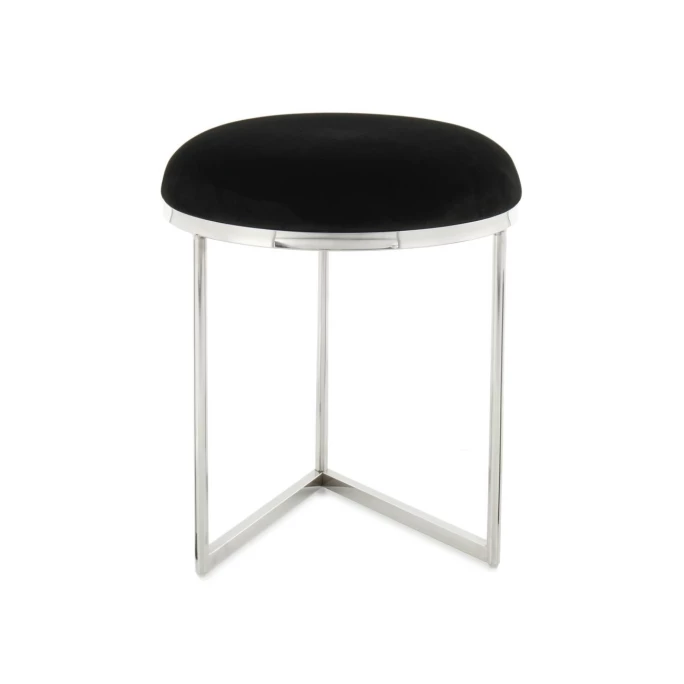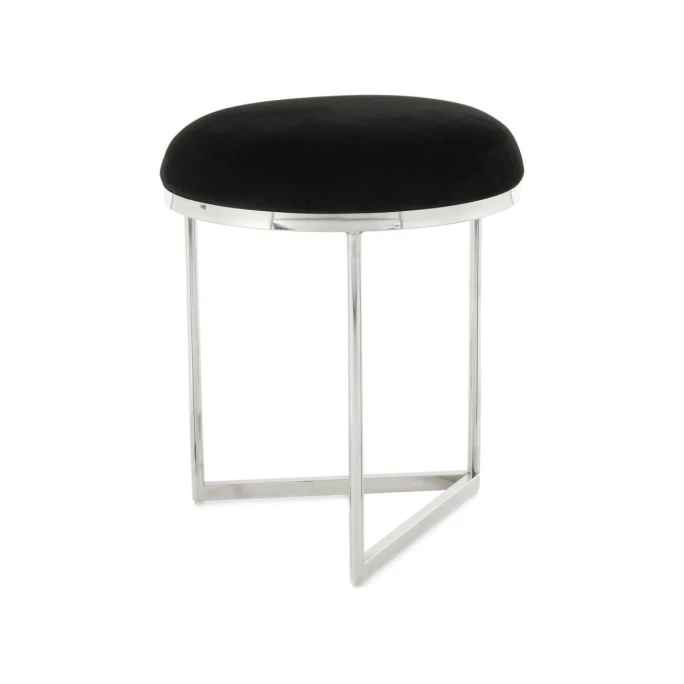 Dieser Sitzhocker kombiniert Luxus und Minimalismus gekonnt miteinander. Durch das offen gestaltete Gestell aus Metall und die gemütliche Sitzfläche bringt der Hocker ein elegantes Ambiente mit sich. Die einfache Aufmachung des Gestells sorgt gleichzeitig für den minimalistischen Charakter des Möbelstücks. Dank der attraktiven Stilkombination kann der Hocker in die verschiedensten Wohnstile integriert werden, egal ob modern, klassisch oder glamourös eingerichtet. Seinen außergewöhnlichen Look erhält der Sitzhocker durch die dreieckige Grundform des Metallgestells. Die runde Form der Sitzfläche bildet einen schönen Kontrast zu der Grundform und sorgt dennoch für ein harmonisches Gesamtbild. Gleichzeitig macht sie den Hocker zu einer gemütlichen Sitzgelegenheit, die sich flexibel einsetzen lässt und dank des leichten Gewichts bei Bedarf einfach verschoben werden kann.