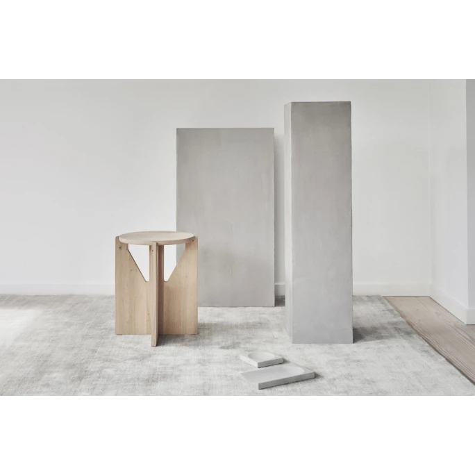 Der Stool Hocker von Kristina Dam Studio ist ein durchdachtes Sitzmöbel, das direkt ins Auge fällt. Aus massiver Eiche gefertigt, setzt der Hocker durch seine wunderschöne, natürliche Maserung und sein ausgefallenes Design besondere Akzente in Ihren Räumlichkeiten. Egal ob im Esszimmer, in der Küche, im Flur, im Wohn-, Schlaf- oder im Ankleidezimmer: Stool ist vielseitig einsetzbar und kann als zusätzliche Sitzgelegenheit, als Fußhocker oder als praktischer Ablagefläche zum Einsatz kommen. Und durch seinen eleganten und schlicht gehaltenen Look passt er zu jeder zeitgemäßen Wohnraumeinrichtung und ist auch eine tolle Geschenkidee für jeden Liebhaber besonderen Designs. Alle Möbelstücke von Kristina Dam Studio werden mit Zapfenverbindungen und Dübeln montiert und sind daher robust und langlebig. Die Oberfläche von Stool ist mit Öl behandelt, um ihn vor Schmutz, Feuchtigkeit und allgemeiner Beanspruchung zu schützen. Zur Reinigung können Sie den Hocker mit warmem Seifenwasser und einem nebelfeuchten Tuch abwischen und direkt danach mit einem weichen Tuch abtrocken. Sollte die Holzoberfläche austrocknen, können Sie den Hocker einfach mit einer sehr dünnen Schicht Oliven-, Raps- oder Leinöl einreiben. Überschüssiges Öl sollten Sie jedoch sofort mit einem weichen Tuch abwischen. Da die Farbe des Holzes durch das Öl dunkler wird, sollten Sie dies zuvor an einer unauffälligen Stelle testen. Verschönern Sie Ihr Zuhause mit dem praktischen und stylischen Stool Hocker von Kristina Dam Studio!