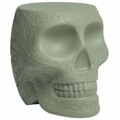 Qeeboo ist eine italienische Marke, welche 2016 von Stefano Giovannoni gegründet wurde und die hochwertige Möbel sowie extravagante Accessoires herstellt. Dabei handelt es sich um außergewöhnliche Objekte, die unter der sorgfältigen Leitung von Stefano Giovannoni in Zusammenarbeit mit den vielseitigsten internationalen Designern geschaffen wurden und verschiedene Stile sowie Charaktere in einen spielerisch-narrativen Ansatz integrieren. Der moderne Stuhl Mexico wurde von Studio Job für qeeboo entworfen und besticht durch die fulminante, skulpturale Totenkopf-Form. Der beeindruckende Schädel ist mit mexikanischen Grafikmusterungen kunstvoll verziert, welche symbolisch dafür stehen, den Tod auszutreiben und das Leben zu feiern. Alternativ kann das opulente Design-Objekt auch als Beistelltisch verwendet werden. Darauf lassen sich Snacks und Getränke servieren oder ein Pflanzgefäß in Szene setzen. Der hochwertige Hocker besteht aus langlebigem Polyethylen (thermoplastischem Kunststoff) und ist robust sowie pflegeleicht. Mit dem außergewöhnlichen Stuhl/Beistelltisch Mexico von qeeboo sorgen Sie überall für ein aufregendes Ambiente. Wir bieten Ihnen das dekorative Wohnaccessoire in verschiedenen Farbvarianten in unserem AMBIENDO Shop an. Gönnen Sie sich etwas Extravaganz!