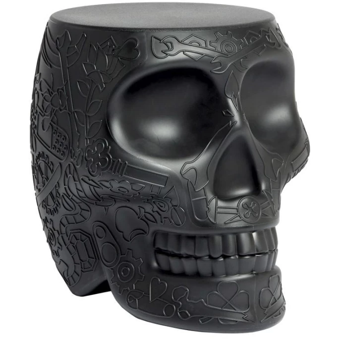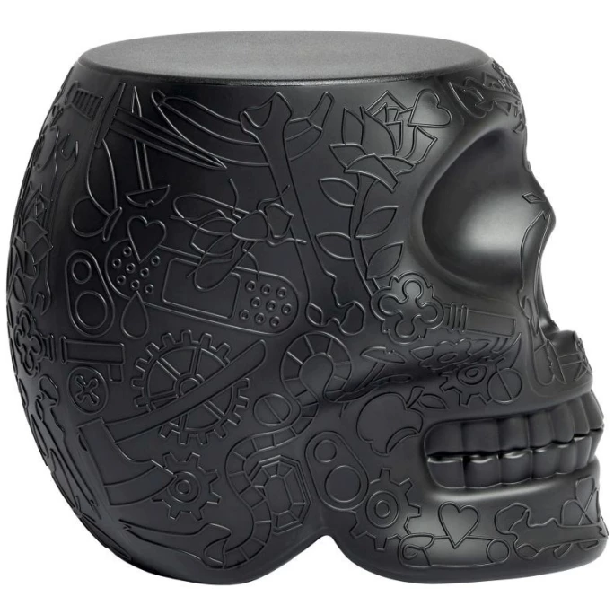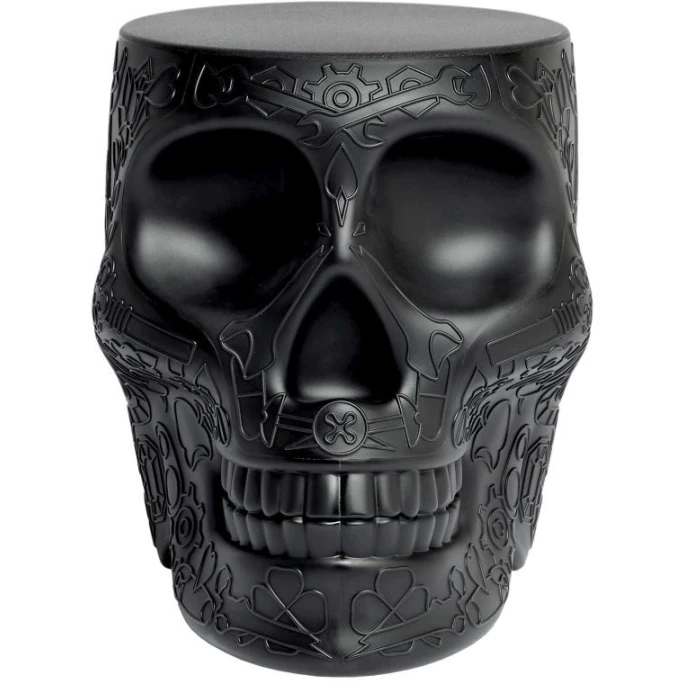 Qeeboo ist eine italienische Marke, welche 2016 von Stefano Giovannoni gegründet wurde und die hochwertige Möbel sowie extravagante Accessoires herstellt. Dabei handelt es sich um außergewöhnliche Objekte, die unter der sorgfältigen Leitung von Stefano Giovannoni in Zusammenarbeit mit den vielseitigsten internationalen Designern geschaffen wurden und verschiedene Stile sowie Charaktere in einen spielerisch-narrativen Ansatz integrieren. Der moderne Stuhl Mexico wurde von Studio Job für qeeboo entworfen und besticht durch die fulminante, skulpturale Totenkopf-Form. Der beeindruckende Schädel ist mit mexikanischen Grafikmusterungen kunstvoll verziert, welche symbolisch dafür stehen, den Tod auszutreiben und das Leben zu feiern. Alternativ kann das opulente Design-Objekt auch als Beistelltisch verwendet werden. Darauf lassen sich Snacks und Getränke servieren oder ein Pflanzgefäß in Szene setzen. Der hochwertige Hocker besteht aus langlebigem Polyethylen (thermoplastischem Kunststoff) und ist robust sowie pflegeleicht. Mit dem außergewöhnlichen Stuhl/Beistelltisch Mexico von qeeboo sorgen Sie überall für ein aufregendes Ambiente. Wir bieten Ihnen das dekorative Wohnaccessoire in verschiedenen Farbvarianten in unserem AMBIENDO Shop an. Gönnen Sie sich etwas Extravaganz!
