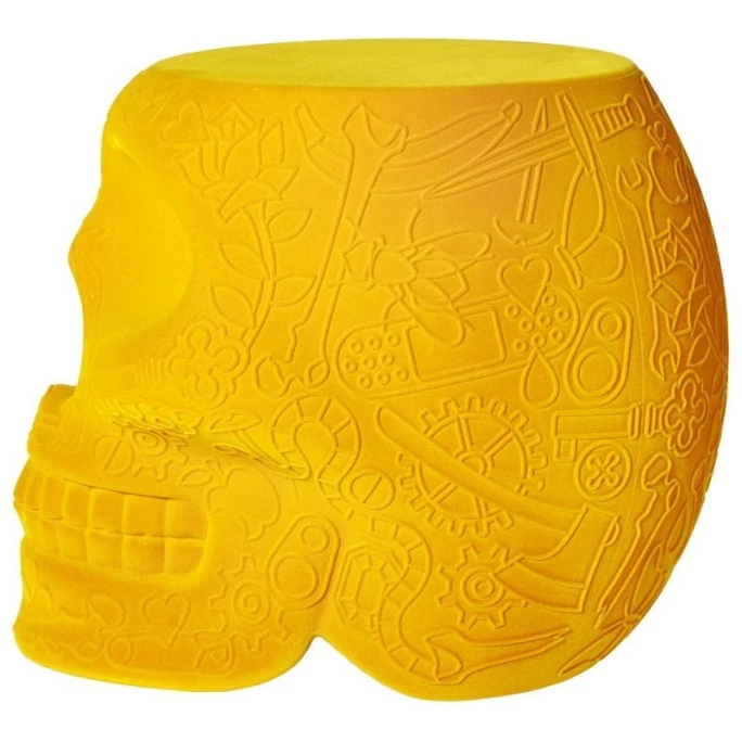 Qeeboo ist eine italienische Marke, welche 2016 von Stefano Giovannoni gegründet wurde und die hochwertige Möbel sowie extravagante Accessoires herstellt. Dabei handelt es sich um außergewöhnliche Objekte, die unter der sorgfältigen Leitung von Stefano Giovannoni in Zusammenarbeit mit den vielseitigsten internationalen Designern geschaffen wurden und verschiedene Stile sowie Charaktere in einen spielerisch-narrativen Ansatz integrieren. Der moderne Stuhl Mexico wurde von Studio Job für qeeboo entworfen und besticht durch die fulminante, skulpturale Totenkopf-Form. Der beeindruckende Schädel ist mit mexikanischen Grafikmusterungen kunstvoll verziert, welche symbolisch dafür stehen, den Tod auszutreiben und das Leben zu feiern. Alternativ kann das opulente Design-Objekt auch als Beistelltisch verwendet werden. Darauf lassen sich Snacks und Getränke servieren oder ein Pflanzgefäß in Szene setzen. Der hochwertige Hocker besteht aus langlebigem Polyethylen (thermoplastischem Kunststoff) und ist mit einem feinem Samt-Finish veredelt. Mit dem außergewöhnlichen Stuhl/Beistelltisch Mexico von qeeboo sorgen Sie überall für ein aufregendes Ambiente. Wir bieten Ihnen das dekorative Wohnaccessoire in verschiedenen Farbvarianten in unserem AMBIENDO Shop an. Gönnen Sie sich etwas Extravaganz!