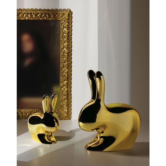 Qeeboo ist eine italienische Marke, welche 2016 von Stefano Giovannoni gegründet wurde und die hochwertige Möbel sowie extravagante Accessoires herstellt. Dabei handelt es sich um außergewöhnliche Objekte, die unter der sorgfältigen Leitung von Stefano Giovannoni in Zusammenarbeit mit den vielseitigsten internationalen Designern geschaffen wurden und verschiedene Stile sowie Charaktere in einen spielerisch-narrativen Ansatz integrieren. Die innovative, farbenfrohe Rabbit Serie von qeeboo avanciert dabei zur absoluten Popikone. Sowohl in der westlichen und als auch in der östlichen Kultur verkörpert das Kaninchen Liebe sowie Fruchtbarkeit und soll außerdem Glück bringen. Der Stuhl aus dieser Serie überzeugt durch Funktionalität und Design. Die Idee des Kaninchens, eines sanften, liebenswerten und scheuen Tieres, stammt aus der Verbindung seiner Silhouette mit der eines Sitzes, wo die Ohren des Kaninchens zur Rückenlehne des Stuhls werden. Die Sitzmöglichkeit wurde in einer Dual-Variante entworfen, welche sowohl von Erwachsenen als auch von Kindern genutzt werden kann. Der Hocker in verspielter Häschenform besteht aus langlebigem Polyethylen (thermoplastischem Kunststoff) und ist mit einem glänzenden Metall-Finish veredelt. Ob Sie an den praktischen, langen Ohren lehnend relaxen oder auf der gegenüberliegenden Seite sitzen wollen oder ihr Nachwuchs darauf reiten und spielen möchte, mit dem Stuhl Rabbit Chair von qeeboo ist dies alles möglich. Wir bieten Ihnen das dekorative Design-Objekt in verschiedenen Ausführungen in unserem AMBIENDO Shop an. Gönnen Sie sich den angenehmen Sitzkomfort!